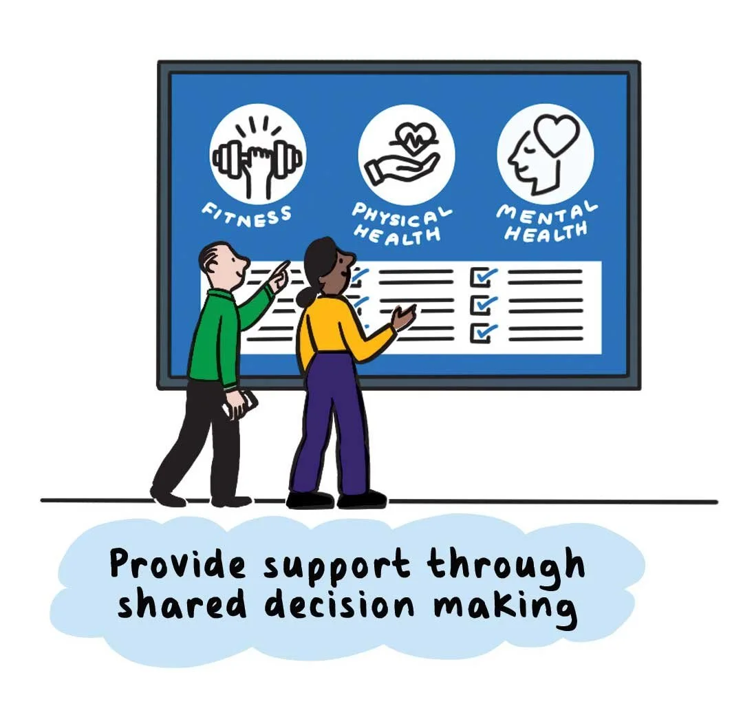 The illustration translates a complex and evolving model of care into a clear, engaging narrative, helping both staff and residents understand how services connect and where they sit within the wider journey.