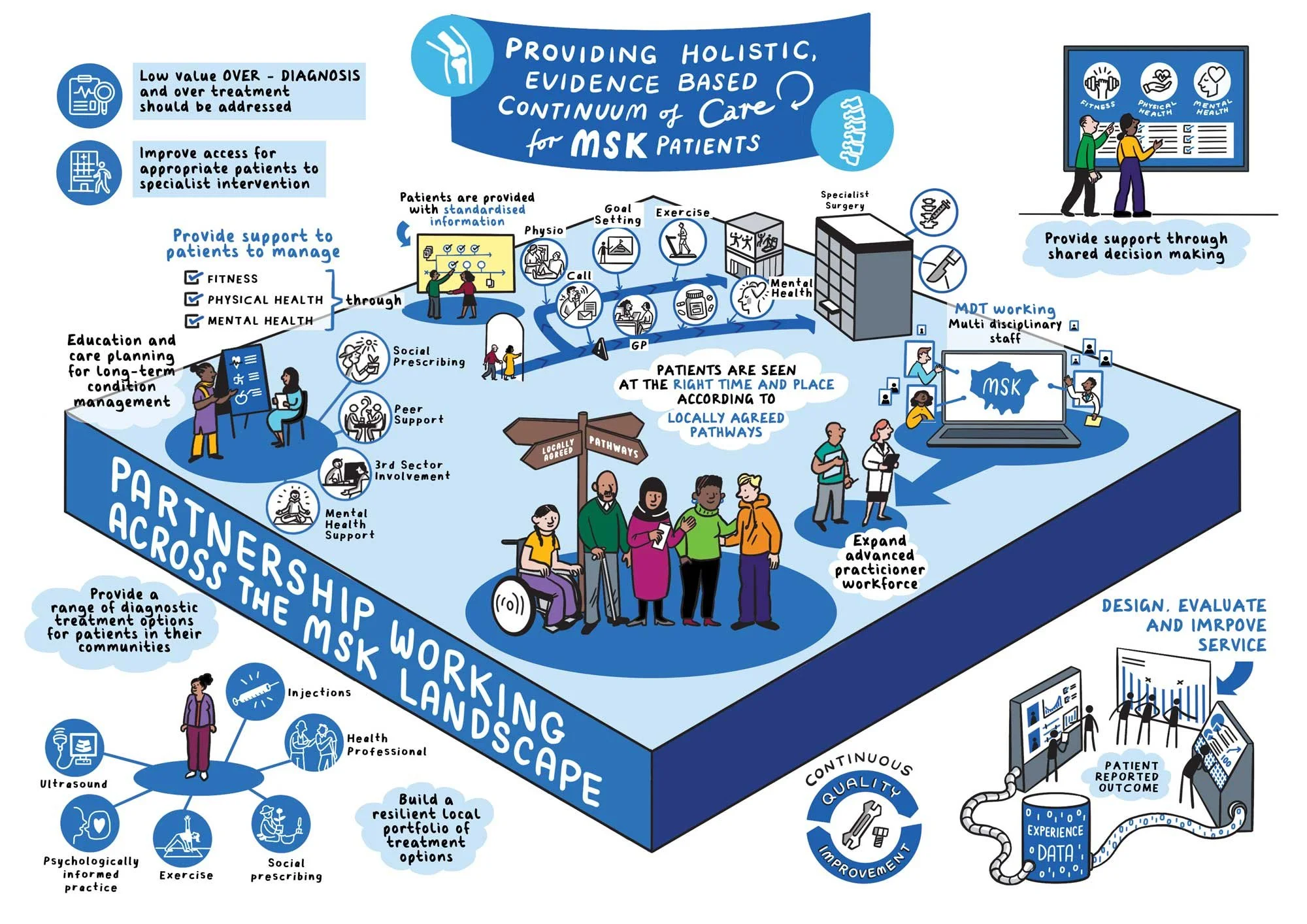 I was commissioned by NHS England to create a detailed visual that brings clarity to the redevelopment of musculoskeletal (MSK) services.